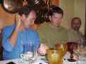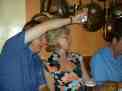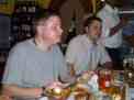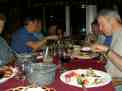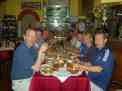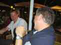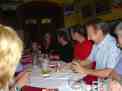 Elbows on the tables to stop the tablecloths blowing away. |